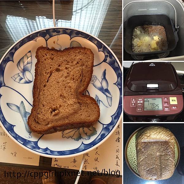 加入手邊剩的巧克力,烤色選擇普通,切開由淺至深的漸層邊緣很漂亮,很喜歡~一看再看..